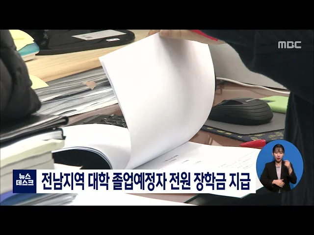 전라남도가 도내 대학 졸업 예정자 전원에게 장학금을 지급합니다. 전남인재평생교육진흥원에 따르면,코로나19로 취업난을 겪는 도내 소재 대학의 졸업예정자6천 6백여명에게 1인당 60만원의 장학금을 지원합니다. 신청은 오는 19일부터 다음달 3일까지전남인재평생교육진흥원 홈페이지에서할 수 있습니다.