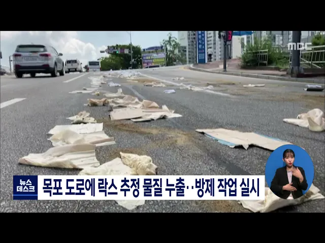 목포 용해동 교차로에 락스로 추정되는 물질이 누출돼 방제작업이 이뤄졌습니다. 오늘 오전 10시 20분쯤 목포시 용해동 목포과학대 앞 교차로에서 락스로 추정되는 물질이 누출됐다는 신고가 접수돼 경찰과 소방당국이 2개 차선 50여 미터를 1시간 넘게 통제하고 방제작업을 벌였습니다. 경찰은 1톤 화물차에서 액체가 담기...