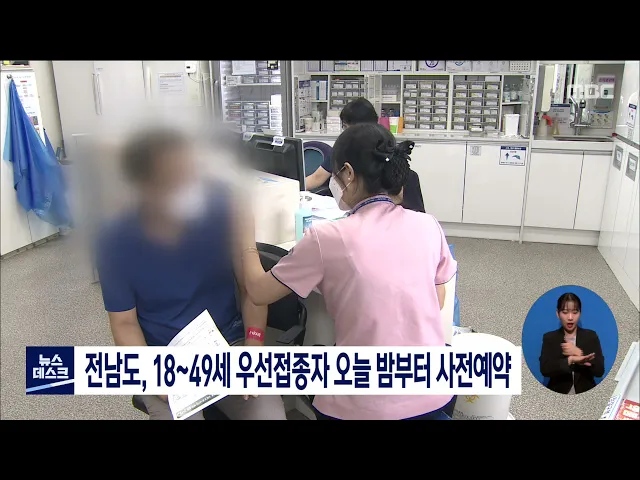 전라남도는 오늘(4) 밤 8시부터 6일 오후 6시까지 만 18-49세 가운데 우선 접종자를 대상으로 백신 사전예약에 들어갑니다. 주요 대상은 대중교통 근무자, 택배근로자, 환경미화원 등 필수업무 종사자와 학원과 청소년 관련 종사자, 일반·휴게음식점, PC방 종사자 등 감염 위험이 높은 시설 종사자들입니다. 18~49세 대다...