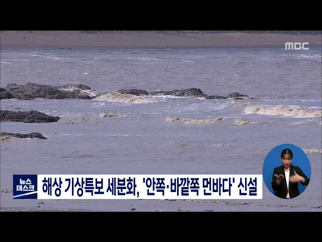 해상에 내려지는 기상 특보 구역이 오늘(29)부터 개편됐습니다. 기상청은 기존에 북쪽과 남쪽 먼바다 등 2개 해역으로 나눴던 기준을 안쪽 먼바다와 바깥 먼바다로 각각 분리해 모두 4개 해역으로 세분화했습니다. 기상청은 위험정보가 필요한 해역에만 해상특보를 내리면서, 도서민 이동과 어선 출어일수가 증가할 것으로 ...