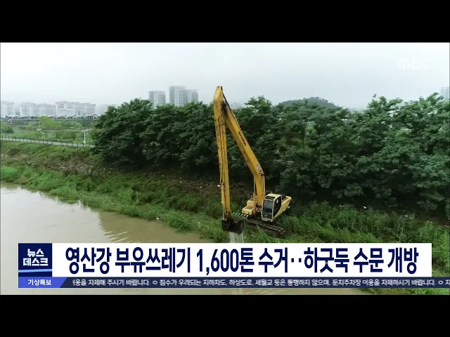 집중호우로 영산강 하굿둑으로 부유 쓰레기가 밀려들면서 쓰레기 제거작업이 진행되고 있습니다. 무안군과 목포시는 오늘(11일)까지 영산강 하굿둑 일대에서 부유 쓰레기 천6백여 톤을 수거했습니다. 영산강 하굿둑에는 이번 집중호우로 4천여 톤의 쓰레기 밀려든 것으로 추정되고 있습니다. 한편, 한국농어촌공사 영산강...