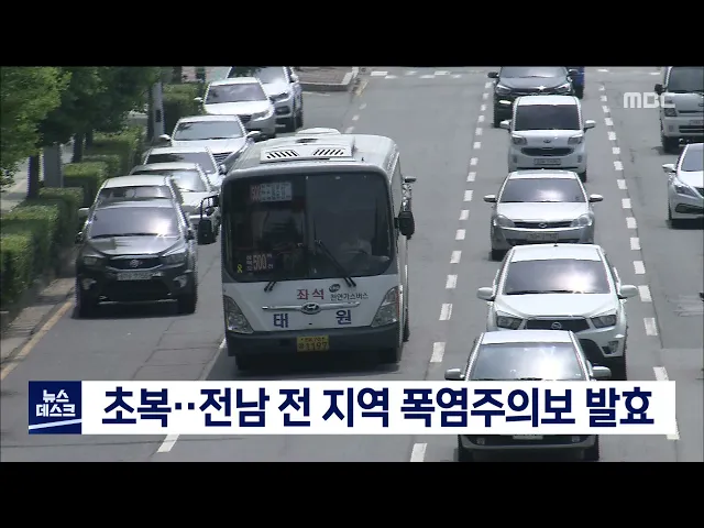 초복인 오늘(11일) 흑산도와 홍도를 제외한 전남 지역에 폭염특보가 발효되는 등 찜통더위가 이어지고 있습니다. 목포를 비롯한 전남지역 20개 시군에는 폭염주의보가 발효됐으며 담양군과 구례군에는 폭염경보가 내려졌습니다. 목포 등 전남지역은 당분간 무더위가 이어지겠으며 온열질환 우려가 높아 야외활동은 가급적 ...