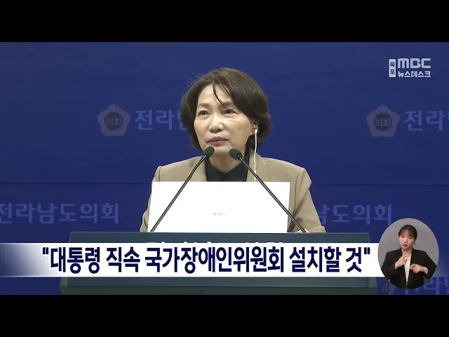 더불어민주당 서미화 의원은 오늘(21일)전남도의회 브리핑룸에서 기자회견을 갖고"대통령 직속 국가장애인위원회 설치" 등 장애인 정책에 대한 국가책임을 강화하겠다고밝혔습니다.서 의원은 또,장애인을 비롯한 교통약자들의 이동할 권리를 보장받을 수 있도록 교통약자 이동권 보장법 제정과 발달장애인 국가책임제 완성...
