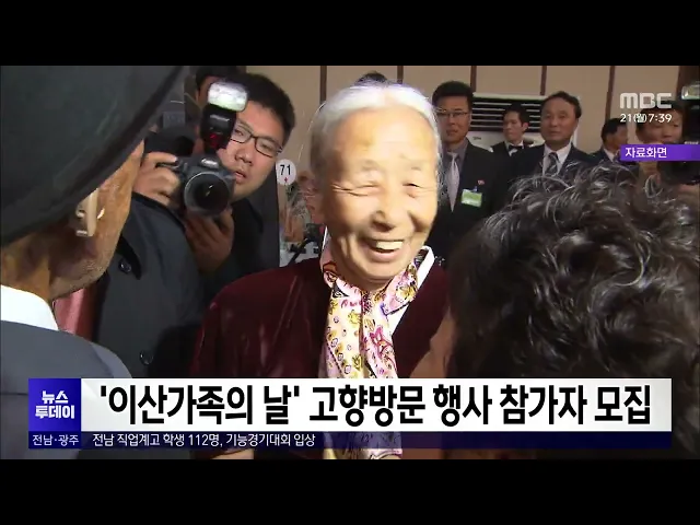 전라남도는 '이산가족의 날'을 기념해 전남지역 이산가족을 대상으로 '고향방문 행사' 참가자를 오는 28일까지 모집합니다.이번 행사는 북측 접경지역을 방문해 실향의 아픔을 나누고 정서적 위로를 전하기 위한 교류 프로그램입니다.참가자로 선정되면 오는 7월쯤 3박 4일 일정으로 중국 대련·단둥 등지에서 문화탐방과 이...