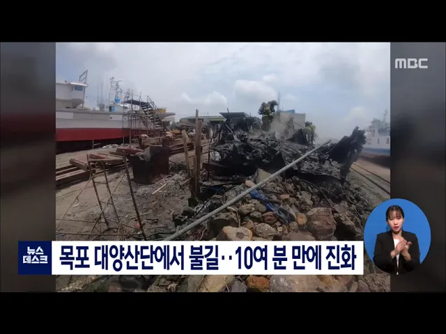 오늘 낮 12시 20분쯤 목포시 대양산단 부지에서 폐선박에서 불이나 출동한 소방대에 15분만에 진화됐습니다. 경찰과 소방당국은 적재된 폐선박에서 불길이 시작된 것으로 보고, 정확한 화재원인과 피해규모를 조사하고 있습니다.