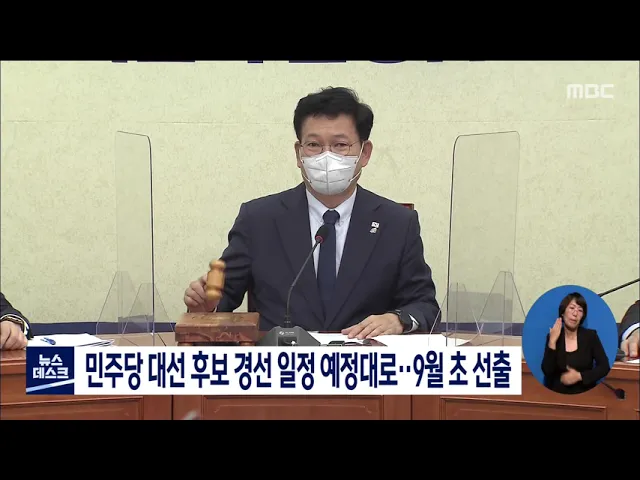 더불어민주당이 대선 후보 경선을예정대로 진행하기로 했습니다.민주당은오늘 열린 비공개 최고위 회의에서최고위원 만장일치 합의를 통해당헌*당규에 정한대로경선을 치르기로 했다고 밝혔습니다.이에 따라 대선 180일 전인9월 10일까지 대선 후보 선출이 이뤄지게 됐습니다.이낙연 정세균 등 6명의 경선 후보는코로나 사...