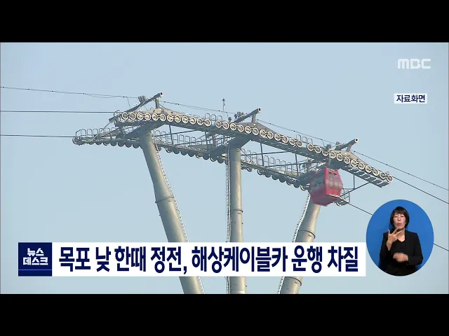목포 낮 한때 정전, 해상케이블카 운행 차질