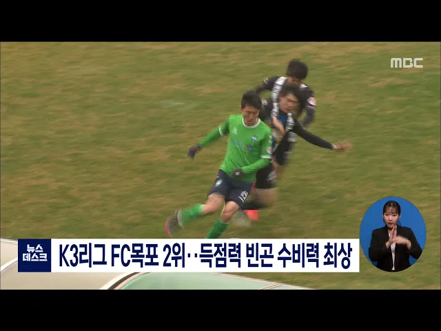 K3리그 FC목포 2위..득점력 빈곤 수비력 최상