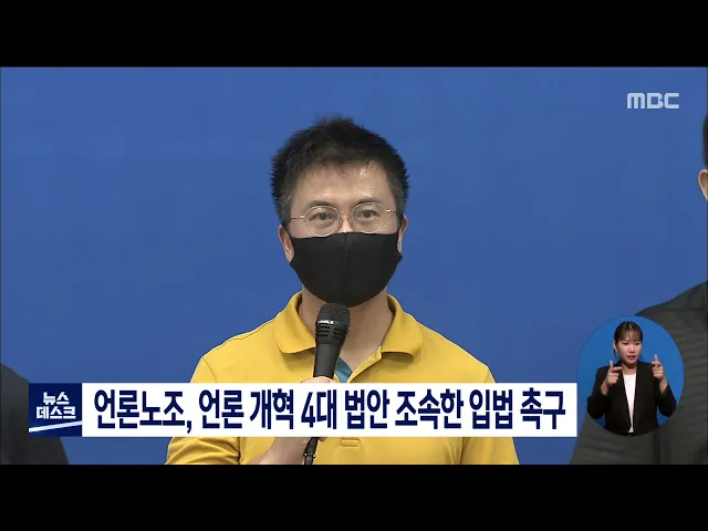 전국언론노조가 여론의 독과점을 우려하며 언론 개혁 4대 입법의 조속한 처리를 촉구했습니다. 전국언론노조는 오늘(15일) 더불어민주당 광주시당 앞에서 기자회견을 열고 중앙 언론의 여론 독과점에 지역의 목소리는 사라졌다면서 이를 막을 수 있는 입법이 시급하다고 촉구했습니다. 언론노조는 또, 코로나19로 된서리를...