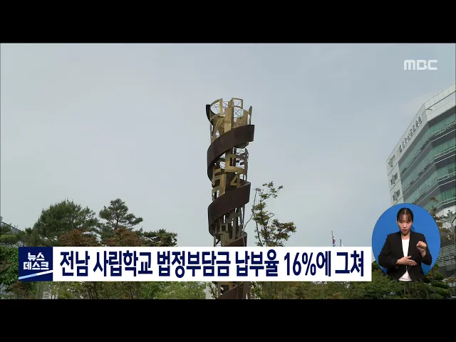 전남지역 사립학교들의 법정부담금 납부율이 16%에 그치고 있습니다. 지난해 기준 전남지역 사립학교들이 법정부담금은 131억원으로 실제 납부액은 22억원 그쳤으며 전라남도교육청은 부족 분 109억원을 학교운영비로 들어가야 할 금액에서 차감해 학교에 지원하고 있습니다. 전남도의회 강문성 의원은 학교 운영비가 부족...