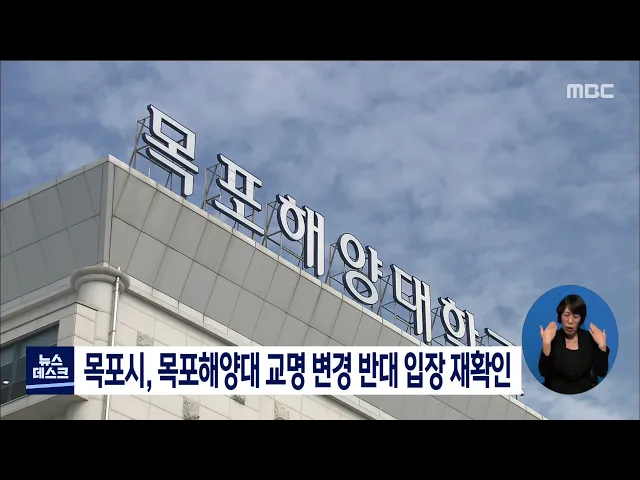 목포해양대학교 교명 변경 움직임을 놓고, 목포시가 반대 입장을 재확인했습니다. 목포시는 최근 목포해양대 측에 보낸 의견서를 통해 "지역사회에 기여해야 하는 국립대학이 목포를 뺀 교명 변경을 추진하는 것은 있을 수 없는 일이며, 시민의 자존심에도 상처를 주는 일"이라고 밝혔습니다. 목포해양대학교는 오는 28일까...