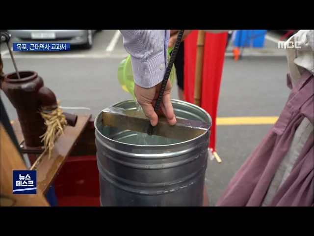 ◀ANC▶ 목포 유달산 자락이 근대와 현대가 맞닿아 예술로 승화되고 있습니다. 신명나는 공연과 함께 과거로 시간여행을 다녀오면, 근대역사 교육이 절로 됩니다. 양현승 기자입니다. ◀END▶ ◀VCR▶ 물지게를 진 키 큰 인형이 거리를 누빕니다. 목포의 명물, 물지게꾼 옥단이를 형상화한 인형입니다. 옥단이는 일제강...