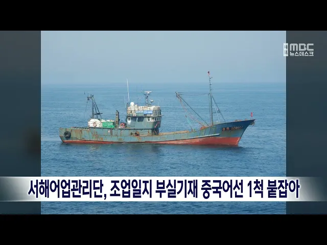 서해어업관리단, 조업일지 부실기재 중국어선 1척 붙잡아