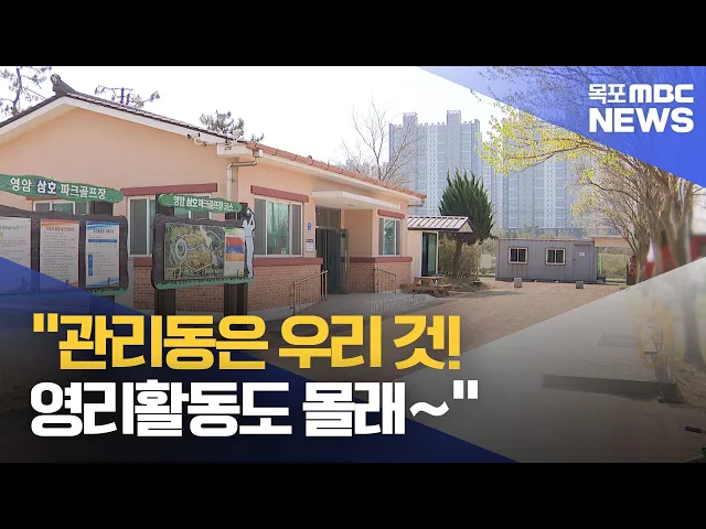 ◀ 앵 커 ▶특정인들의 사유시설처럼 이용되고 있는영암군의 파크골프장 소식을 전해드렸는데요.MBC 취재 결과 허가도 받지 않은 가건물을 지어놓고 파크골프용품 영업까지 한사실이 추가로 드러났습니다.최다훈 기자가 취재했습니다.◀ 리포트 ▶영암군 삼호파크골프장이 조성된 건 지난 2018년입니다.4개 코스 36홀 규모의 경...