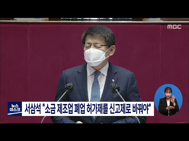 서삼석 "소금제조업 폐업 허가제를 신고제로 바꿔야"
