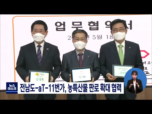 전라남도와 한국농수산식품유통공사,e커머스 대표주자인 11번가가 전남 농특산물의 온라인 판로 확대에 나섭니다.3개 기관은 업무 협약을 통해 11번가는 남도장터 브랜드관을 운영하고, 판매 수수료를 우대 지원하는 한편 라이브방송을 통해 남도장터 제품의 입점과 프로모션도 진행하기로 했습니다전라남도가 운영하는 온...