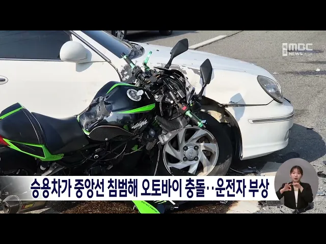 승용차가 중앙선 침범해 오토바이 충돌..운전자 부상