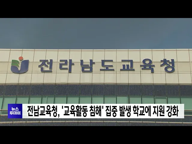 전라남도교육청이 교육활동 침해가 다수 발생하는 학교를 집중적으로 지원하기로 했습니다.전남교육청은도내 22개 시군 교육지원청에 지역교권보호위원회를 운영하고 있지만교육활동 침해가 특정 학교나 지역에 집중되고 있다고 밝혔습니다.이에따라해당 학교와 지역청을 직접 관리해 교육활동보호센터와 교사의 간담회,교...