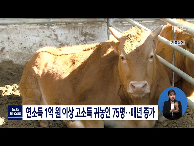 전남에 귀농해 연소득 1억 원 이상을 올린 농가가 75농가로 분석돼 해마다 꾸준히 늘고 있는 것으로 나타났습니다. 규모별로는 1억 원 이상 2억 원 미만 농가가 45농가로 전체 고소득 농가의 60퍼센트를 차지했으며, 경영 형태별로는 축산농가가 28농가로 가장 많았고 식량과 과수 순으로 집계됐습니다.