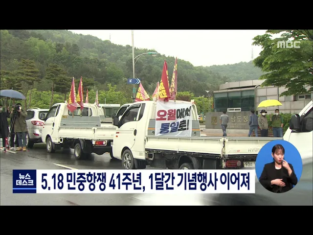 5.18 민중항쟁 41주년을 맞아 한 달 동안 전남에서 기념행사가 이어집니다. 전농 광주전남연맹은 어제(4) 전남도청에서 목포역에 이르는 도심 도로에서 차량 30여 대로 1980년 5월 당시 민주 기사의 날 차량시위를 재현했습니다. 또 오는 11일에는 기념학술토론회가 열리고 17일과 18일에는 각각 41주년 기념식과 남도 오월...