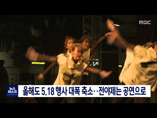 올해도 코로나19의 여파로 5.18 기념행사가 대폭 축소되지만전야제는 공연 형식으로 열립니다.5.18 41주기 행사위원회에 따르면오는 17일, 5.18 민주광장에서다양한 장르의 공연 형식으로 전야제가 열리지만참석 인원이 99명으로 제한됩니다.또 미얀마 민주화운동 지지를 위한 행사와5.18 정신계승을 위한 국민대회 등이 계...