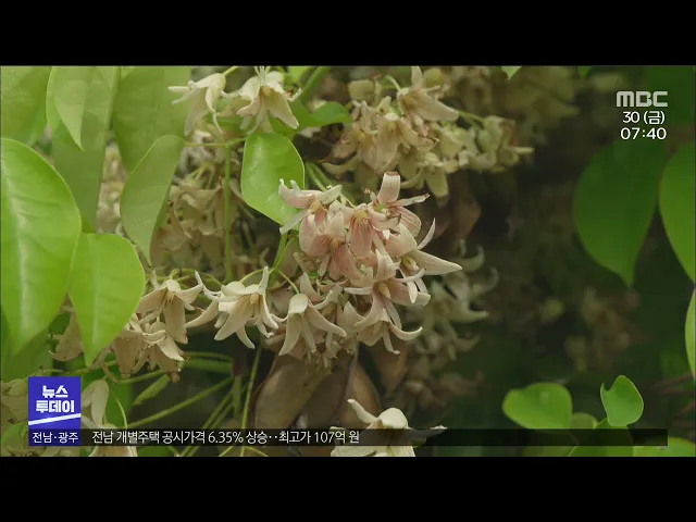 ◀ANC▶ 상록덩굴나무인 '멀꿀'은 추위에 약해 우리나라의 남쪽 해안과 섬지역에서 주로 자생하고 있습니다. 열매가 꿀과 같다해서 이름붙여진 '멀꿀'이 MBC 카메라에 담겼습니다. ◀END▶ -'멀꿀' -남녘 해안가와 섬지역에서 주로 자생 -4~5월 황백색 꽃이 핌 -타원형 열매는 10월 쯤 익고 꿀처럼 달다 -영상취재: 김승...