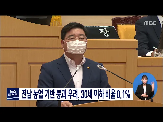전남의 전체 농가 중 30세 이하의 비율은 0.1%에 불과해 농업기반 붕괴가 우려되고 있습니다. 전남도의회 신민호 의원은 전남 14만3천여 농가 가운데 30세 이하는 107가구에 불과했고, 60대 이상이 전국 평균 60%보다 20% 가까이 높은 79%로 나타났다고 지적했습니다. 신 의원은 "청년 농업인 육성이 절실하다"며, 지역대학...