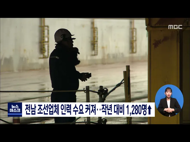 선박 경기 동향이 호조를 보이며 전남의 조선산업 인력 고용 수요가 커지고 있습니다. 현대삼호중공업과 대한조선, 대불산단에서는 지난해 모두 1만9천8백여 명이 고용돼 있었지만, 올해는 2만1천여 명으로 1천2백80명이 추가로 필요한 것으로 분석됐습니다. 올해 1분기 수주잔량은 평균 92척으로 2019년 97척, 지난해 84척...