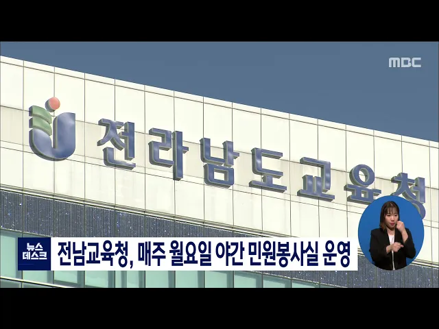 전남교육청, 매주 월요일 야간 민원봉사실 운영
