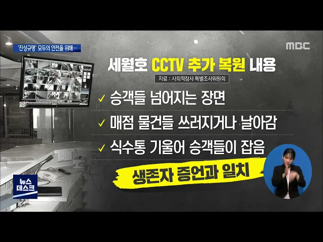 ◀ANC▶ 세월호의 항적, 선체 내부 CCTV와 같은 참사의 증거들이 조작의 의혹을 벗지 못하고 있습니다. 침몰 원인을 밝히는데 가장 기본적인 증거조차 다시 의심해야하는 상황이지만, 진상규명은 조금씩 앞으로 나아가고 있습니다. 양현승 기자입니다. ◀END▶ ◀VCR▶ 세월호에 설치돼있던 CCTV는 모두 64개입니다. 화...