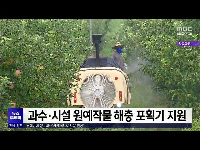 전라남도는 과수와 시설원예작물 해충포획기 지원사업을 실시합니다.이번 지원사업은 올해 처음 추진하는 것으로해충을 유인해 포획하고 해충 밀도를 낮추는 방제 효과를 통해 농약 사용을 줄이며 농가의 재정적 부담도 덜어줄 것으로 기대됩니다.지원 규모는 여수시를 비롯한 17개 시군에노지 3백87헥타르와 시설 3천백여 ...