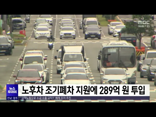 전라남도는미세먼지 저감과 대기질 개선을 위해 노후 차량 조기폐차에 289억 원의 예산을 투입합니다.지원 차량은배출가스 4·5등급 경유차와2009년 8월31일 이전 배출허용기준을 적용받고 제작된 도로용 3종 건설기계,2004년 이전 자동차 배출허용기준을 적용해제작된 지게차·굴삭기입니다.