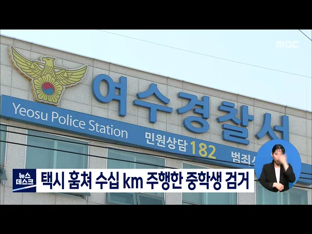 택시를 훔쳐 수십 킬로미터를 주행한 중학생이 경찰에 붙잡혔습니다. 여수경찰서는 어제(11) 오전 3시쯤 여수시 미평동에 세워진 택시를 훔친 뒤 순천시 해룡면까지 40여 킬로미터를 주행한 혐의로 14살 A군을 붙잡아 조사하고 있습니다. A군은 경찰 조사에서 차 안에 열쇠가 있는 것을 보고 차량을 훔쳤다고 진술한 것으...