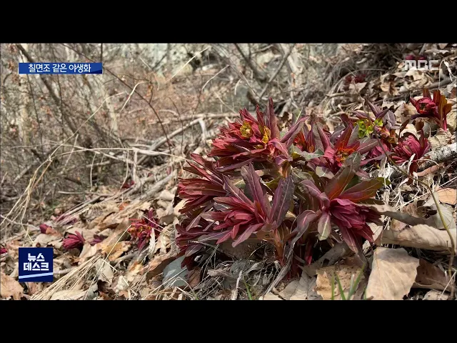 ◀ANC▶ 시간이 흐르면서 색깔이 변하는 야생화가 있습니다. 변화무쌍한 모습이 칠면조를 닮은 '붉은대극'이 MBC 카메라에 잡혔습니다. ◀END▶ -붉은대극 -숲속 바위 지대에 자라며 새싹이 빨간색이어서 붉은대극이라 이름붙여짐 -붉은 색 새싹이 자라면서 점차 녹색으로 변한다 -대극(大戟)은 ‘큰 창’이라는 의미. -3...