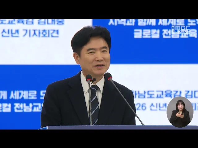 김대중 전남교육감이 신년 기자회견에서3대 핵심 교육정책과 함께광주·전남 교육행정 통합에 관한입장을 밝혔습니다.김 교육감은 이 자리에서올해 AI 미래 교육 생태계 구축과 학교와 지역의 공생 교육, 다양성 기반의 글로컬 교육을추진하겠다고 발표했습니다.또 광주·전남 행정통합 추진과 관련해"행정통합 단체장을 뽑을...