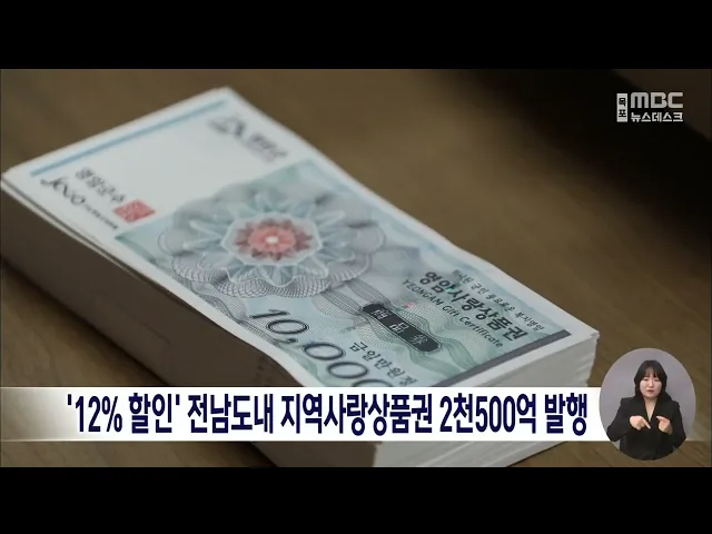전라남도가 이달(1)부터 2천 500억 원 규모의 지역사랑상품권을최대 12% 할인율로 발행합니다.전라남도는 상시 10% 수준의 할인율에 2%를 더해 운영할 수 있도록50억원의 도비를 투입한다고 밝혔습니다.특히 영암군과 무안군 등 일부 시군에선 자체 예산을 추가 투입해15%까지 할인율이 높아졌습니다.