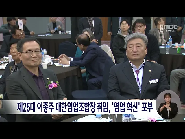 이종주 제25대 대한염업조합 조합장이 취임했습니다.이 조합장은 취임사에서 "염업조합의 체질을 근본적으로 혁신해 조합과 조합원의 위상을 높이겠다"며, 소금값 안정과 가격 상승, 조합 신뢰 회복, 조합청사와 저장창고 건립, 조합원 복지 향상, 새로운 사업 발굴 등 5대 중점 과제를 제시했습니다.또 800여 조합원들의 ...