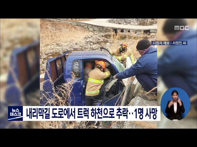 내리막길 도로에서 트럭 하천으로 추락..1명 사망