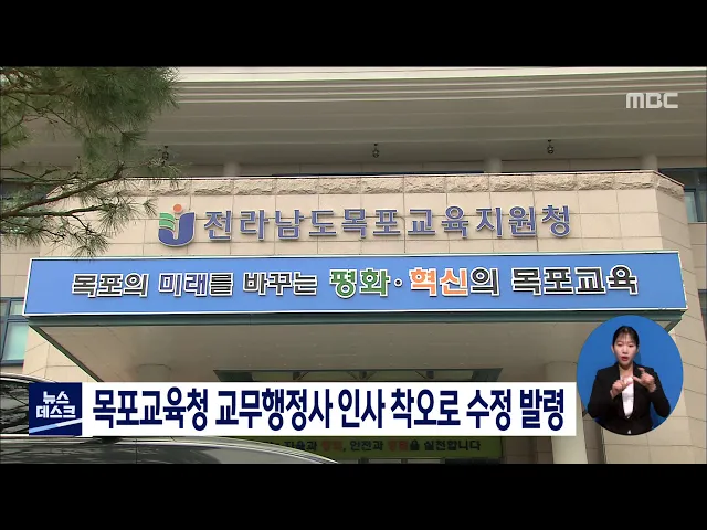목포교육청이 지난 15일 행정착오로 교무행정사 인사발령을 취소하고 수정발령을 내면서 빈축을 사고 있습니다. 목포교육청은 지난 5일 각급 학교 교무행정사 17명에 대해 인사발령을 냈지만 일부 교무행정사는 열흘 뒤인 지난 15일 행정착오가 있었다며 수정발령됐습니다. 목포교육청은 일부 교무행정사의 해당 학교 만기...
