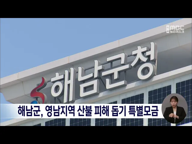 영남지역 산불 피해가 잇따르면서 해남군도 지원에 나섰습니다.해남군은 자매결연도시인 영덕군을 돕기 위해10억 원을 목표로 고향사랑기부제 긴급 모금에 나섰으며 하루 만에 2천 명 넘는 기부자들이참여해 1억 9천만 원이 모금됐다고 밝혔습니다.모금된 금액은 산불 피해를 입은 주민 지원과구호활동에 사용될 예정입니다...