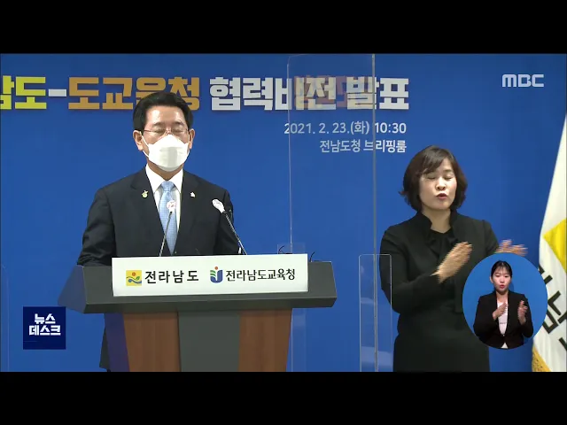 전라남도와 전라남도교육청이 코로나19 극복과 지역미래인재육성에 공동으로 대응하기로 했습니다. 김영록 지사와 장석웅 교육감은 공동 기자회견을 열고, 학교와 지역사회가 생생하는 문화를 만들겠다며 이같이 약속하고 탄탄한 방역체계를 통해 3월 신학기를 차질없이 준비하겠다고 밝혔습니다.///