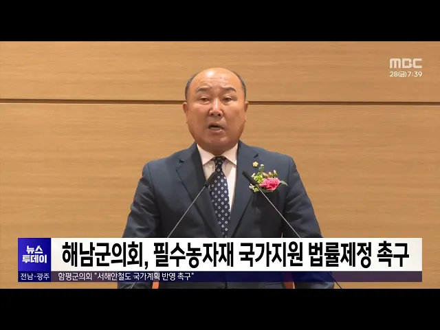 해남군의회, 필수농자재 국가지원 법률제정 촉구
