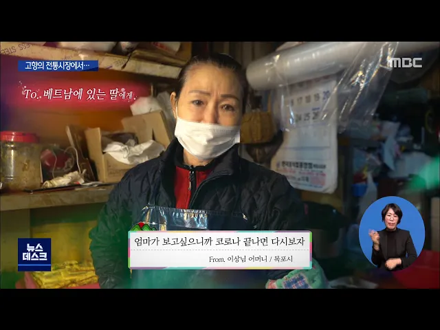 ◀ANC▶ 설 명절을 맞은 고향의 전통시장, 대목이라는 말이 무색하게 코로나19의 직격탄을 맞았습니다. 그럼에도 여느 때와 다름없이 묵묵히 제 자리를 지키고 있는 이들이 멀리 있는 가족에게, 또 친구들에게 안부를 전하고 있습니다. ◀END▶ ◀VCR▶ ◀INT▶ 이상님/목포 동부시장 "딸아 베트남에 있으면서 코로나 ...