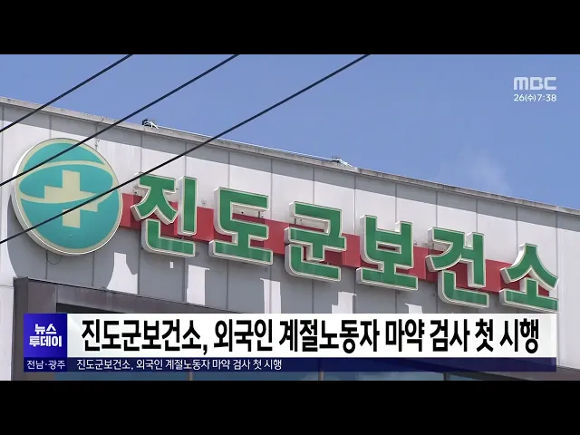 진도군보건소가 외국인 등록 과정에서 마약 검사확인서가 필요한계절노동자들을 위해 마약 검사를 시작했습니다.그동안 진도군에는 법무부에서 지정한마약 검사 병의원이 없어 외국인 노동자들이다른 지역 의료기관에서 마약 검사를 받은 뒤검사 확인서를 발급받기 위해 재방문해야하는 불편을 겪어왔습니다.