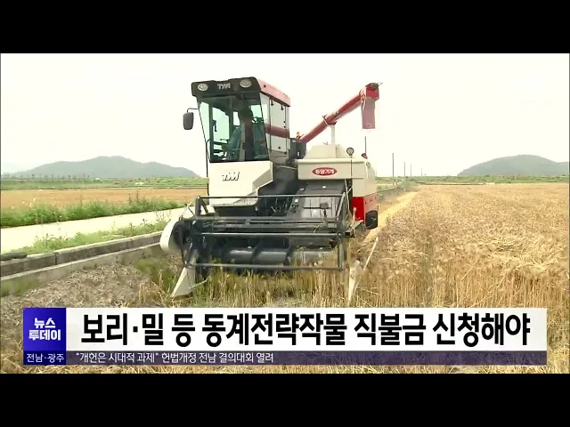 전라남도가 동계전략작물 직불금 신청이 오는 31일 마감된다며 지급 대상 농업인들의신청을 당부했습니다.지원 대상은 지난해 10월부터 올해 10월까지 천 제곱미터 이상의 논에서 작기별로 보리·밀, 하계조사료 등 전략작물을 재배하는 농업경영체입니다.