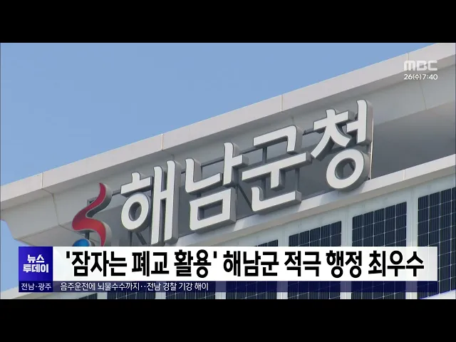 '잠자는 폐교 활용' 해남군 적극 행정 최우수