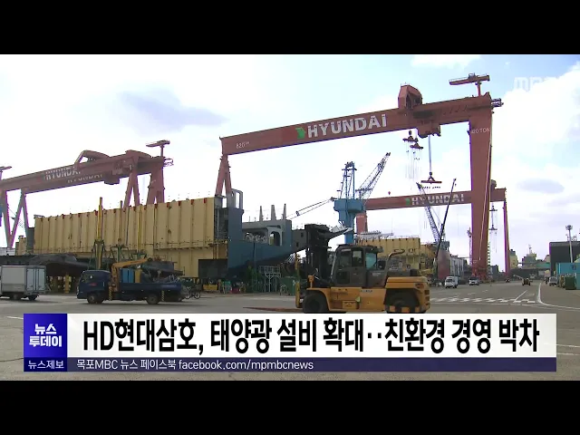 조선업계 친환경 경영을 선도하는 HD현대삼호가 최근 사외 주차장에 1.8메가와트 급 태양광 발전 설비를 구축했습니다.이어 내년까지 2.2메가와트 규모의 추가 태양광 설비를 도입할 계획이라고 밝혔습니다.HD현대삼호는 탄소중립과 친환경 에너지 혁신을 위해 업계 최초로 오폐수 100% 재이용 고도처리시설과 에너지 관제...
