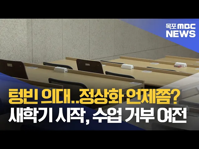◀ 앵 커 ▶새학기가 시작됐지만, 전남대와 조선대 의대생들의 수업 거부는 여전히 계속되고 있습니다.신입생들의 수업 거부도 현실화되고 있는데요.교육부는 강경한 입장을 고수하고 있습니다.이재원 기잡니다.◀ 리포트 ▶새학기를 맞이한 조선대학교.활기찬 캠퍼스와는 달리 의과대 건물은 고요함이 흐릅니다.6백명이 넘는 ...