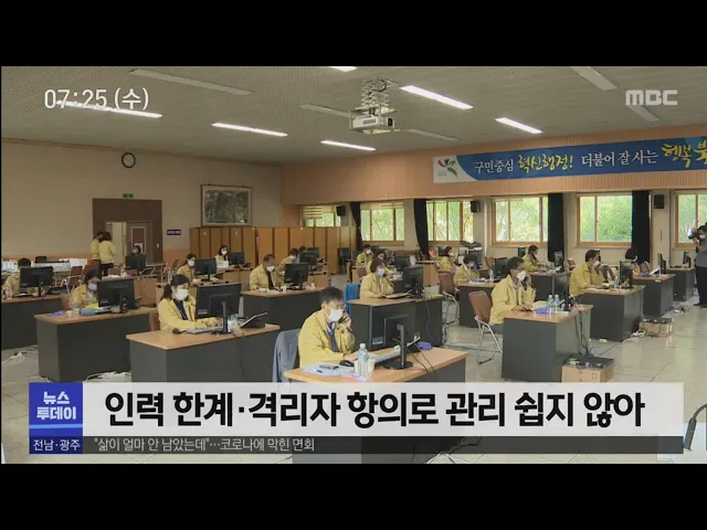 (앵커) 확진자가 늘어나면서 자가 격리자도 급증하고 있습니다. 하지만 인력의 한계와 자기격리자들의 항의로 통제가 쉽지만은 않습니다. 송정근 기자입니다. (기자) 공무원들이 마스크와 온도계 등을 쇼핑백에 담느라 분주합니다. 하루에 한 번 격리자들에게 전달되는 물품을 챙기고 있는 모습입니다. (현장모습) "마스크...