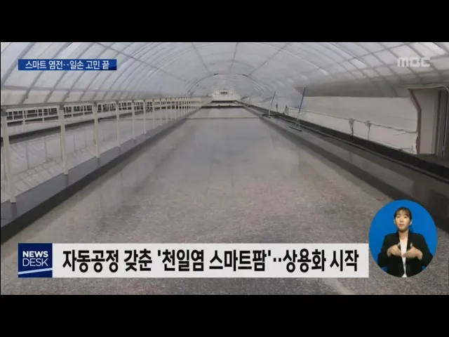 ◀ANC▶ 소금을 만드는 공정을 자동화한 '스마트 염전' 기술이 상용화됐습니다. 생산량은 늘고 '일손부족' 농가의 고민을 덜어줄 것으로 기대됩니다. 김안수 기자가 취재했습니다. ◀END▶ 신안군 염전에 천평 규모의 비닐하우스가 들어섰습니다. 지난해 9월 완공된 '천일염 스마트팜'입니다. 사람의 손이 많이 가는 천일...